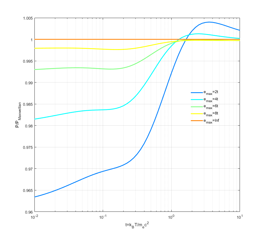 针对这一问题,本研究在保持总电子能量恒定的条件下,系统地考察了不同电子速度分布函数对轫致辐射功率的影响。研究结果表明,常见的电子速度分布函数对总辐射功率的影响较为有限。此外,本研究给出了在固定电子能量时轫致辐射功率的上下限,并且总结了辐射功率随分布函数变化的规律。电子-离子辐射功率依赖于电子能量分布的集中程度,在非相对论能区,能量集中会增强辐射功率,而在高温相对论能区,能量集中会抑制辐射。这种差异源于不同能区中高能电子对辐射贡献的显著不同。对于电子-电子轫致辐射,研究发现了类似的能量集中依赖性。除了对能量分布函数的依赖性外,电子-电子辐射功率还对速度分布函数有依赖性。这些规律为未来聚变装置的建设、抑制聚变堆中轫致辐射能量损失提供了重要的理论指导。